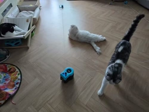 "Świetny gadżet dla aktywnych i leniwych futrzaków 🐈. Mój starszy kocur nie był fanem biegania, ale dzięki powolniejszemu trybowi powoli zaczął się ruszać i widać, że ma więcej energii. Do tego zabawka pracuje cicho, więc nie przeszkadza nam wieczorem."